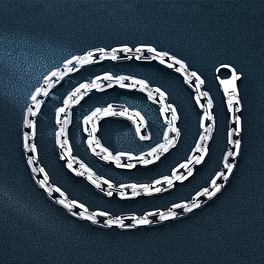 Stainless Steel Classic Simple 4 Sides Polished Flat Chain Necklace