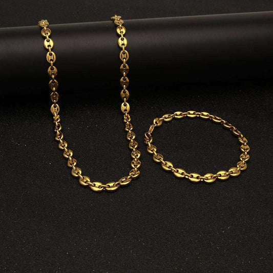 Design HipHop Stainless Steel Gold Silver Color Plated Coffee Bean Chain Necklace for Men