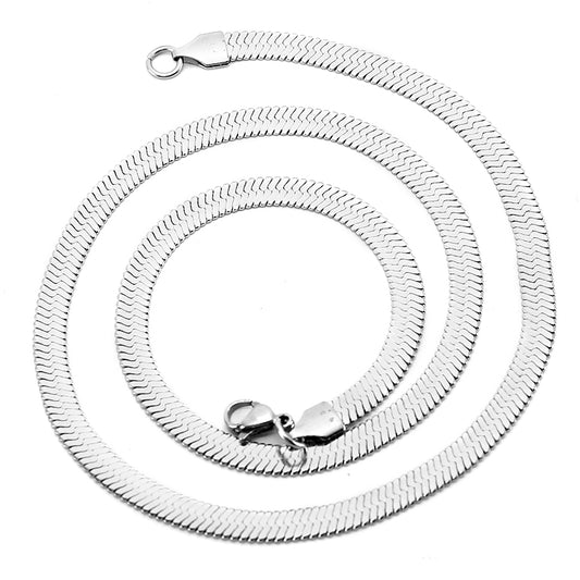 Stainless Steel Flat Snake Chain Bracelet Men Women Jewelry Set