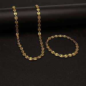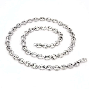 Make a bold statement with this unique Coffee Bean Chain Necklace. Featuring a detailed coffee bean design in a versatile gold and silver color plating, this piece is a must-have for any hip-hop and streetwear enthusiast. Crafted from durable stainless steel for everyday wear.