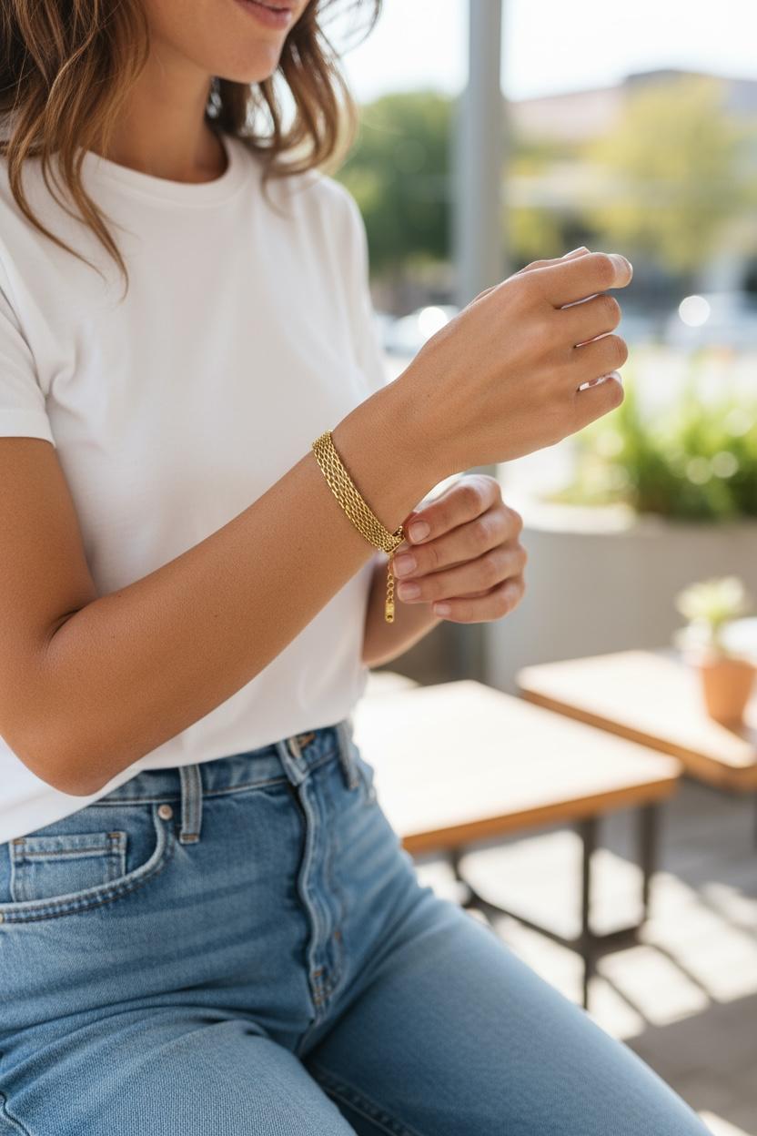 With its sleek metallic finish and secure clasp, this bracelet delivers both style and confidence for any occasion.
