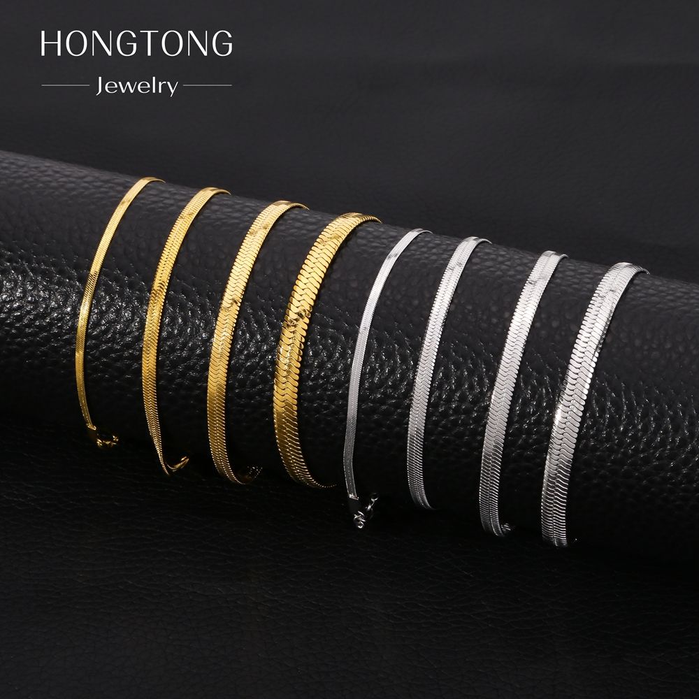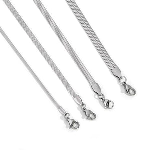 Stainless Steel Flat Snake Chain Bracelet Men Women Jewelry Set