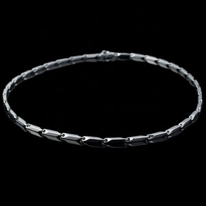 This unique design features melon-seed shaped links seamlessly paired with bamboo-joint detailing, creating a distinctive texture that stands out without being overly flashy. The smooth, polished surface offers a refined masculine appeal, while the geometric structure adds a bold statement to any outfit.